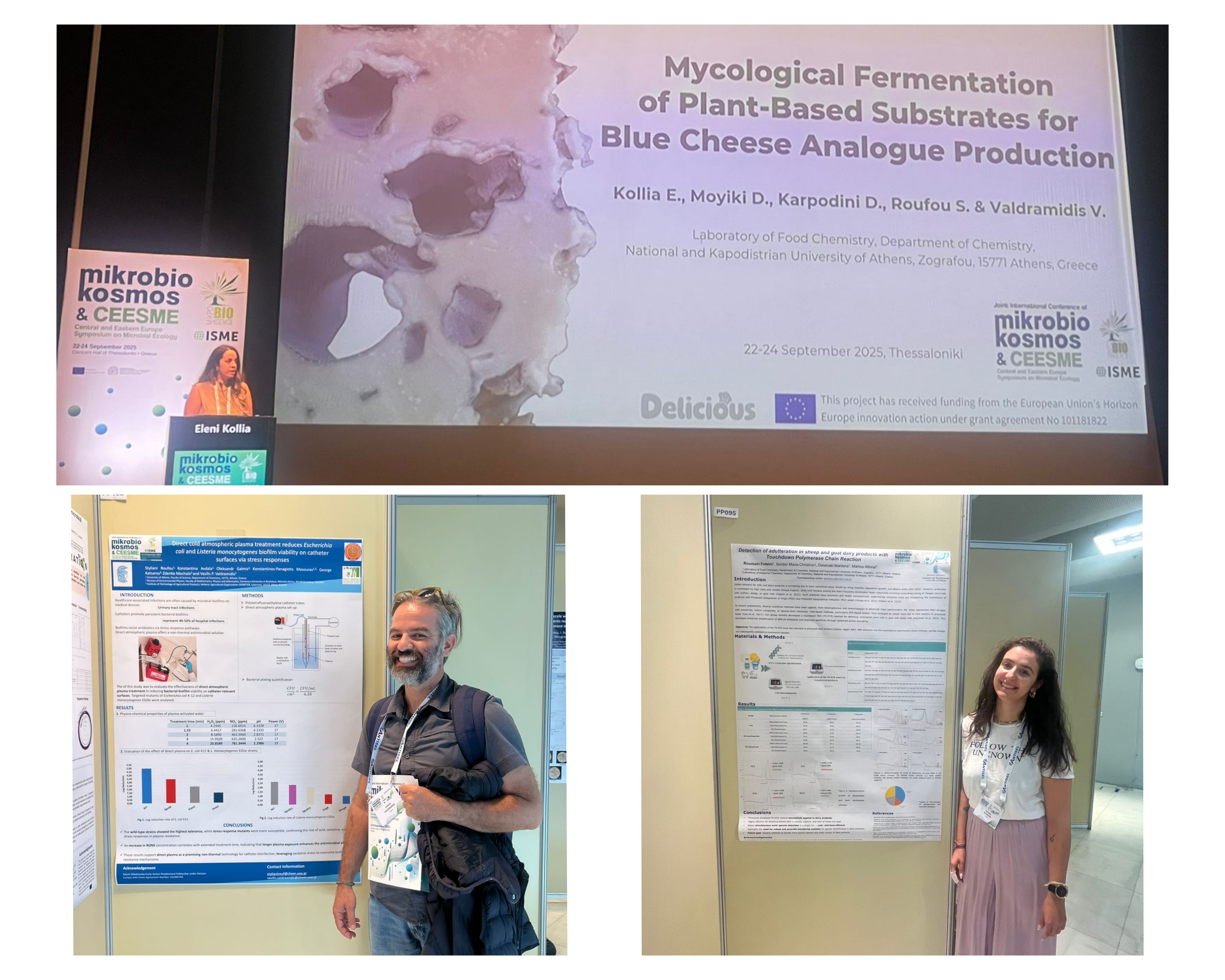 Κατά το διάστημα 22-24 Σεπτεμβρίου, πραγματοποιήθηκε στη Θεσσαλονίκη το συνέδριο "MIKROBIOKOSMOSCEESME 2025", στο οποίο συμμετείχe με προφορική παρουσίαση η Δρ. Ελένη Κόλλια, με τίτλο παρουσίασης "Mycological Fermentation of Plant-Based substrates for blue cheese analogue production", η οποία παρουσίασε μέρος της έρευνάς της. Eπιπλέον, οι μεταδιδακτορικές ερευνήτριες του εργαστηρίου Δρ. Φαίη Ρουμάνη και Δρ. Στυλιανή Ρούφου μαζί με τον Αναπληρωτή Καθηγητή Δρ. Βασίλη Βαλδραμίδη παρουσίασαν μέρος της ερευνητικής τους δραστηριότητας μέσω poster.